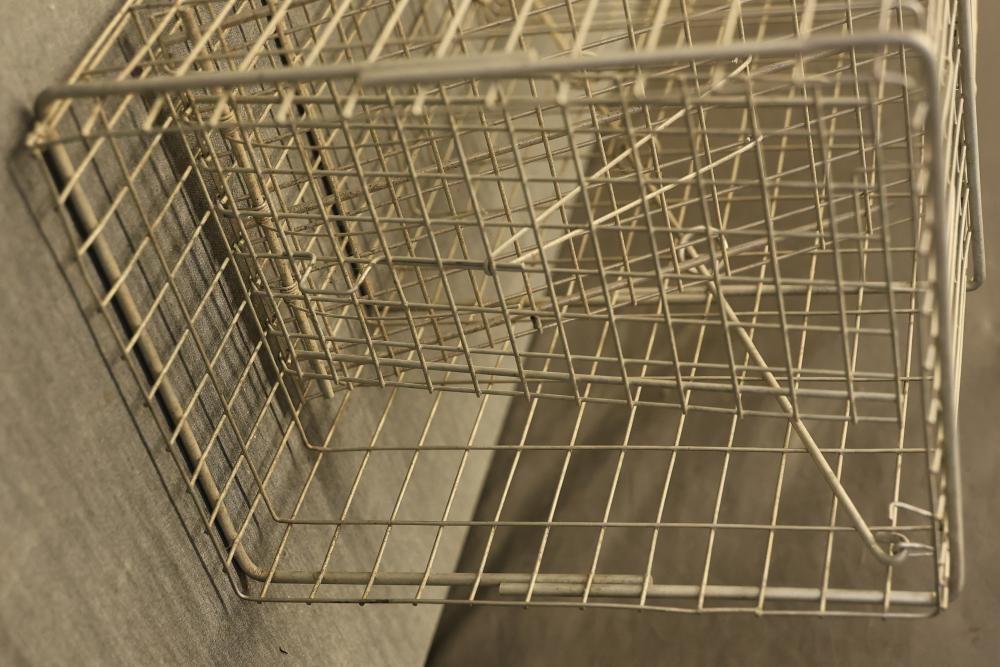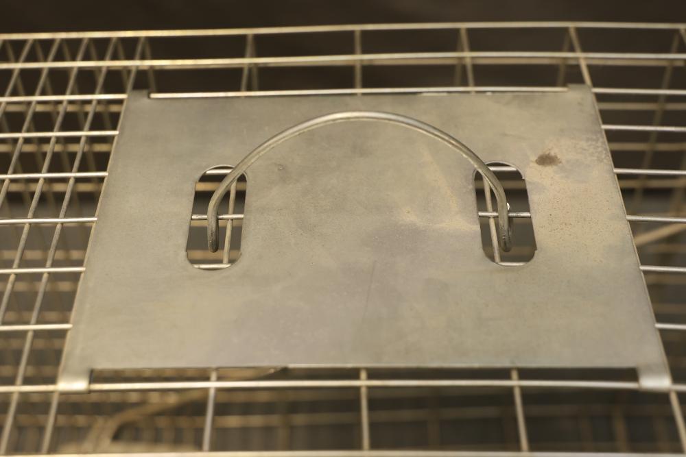 Have-A-Heart Humane Animal Trap, Steel Wiring, 12.5 x 10 x 32 Inches. The trap features a handle on top for easy transport and an opening on one end. Constructed from durable steel wiring. The dimensions from the opening measure approximately 12.5 inches high, 10 inches wide, and 32 inches deep. Pickup only.