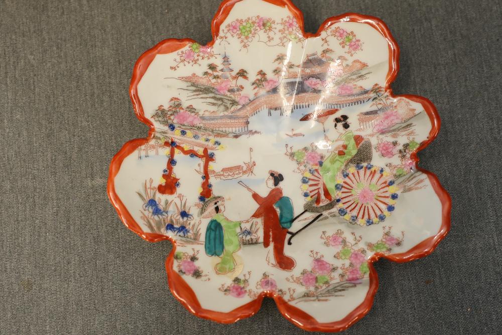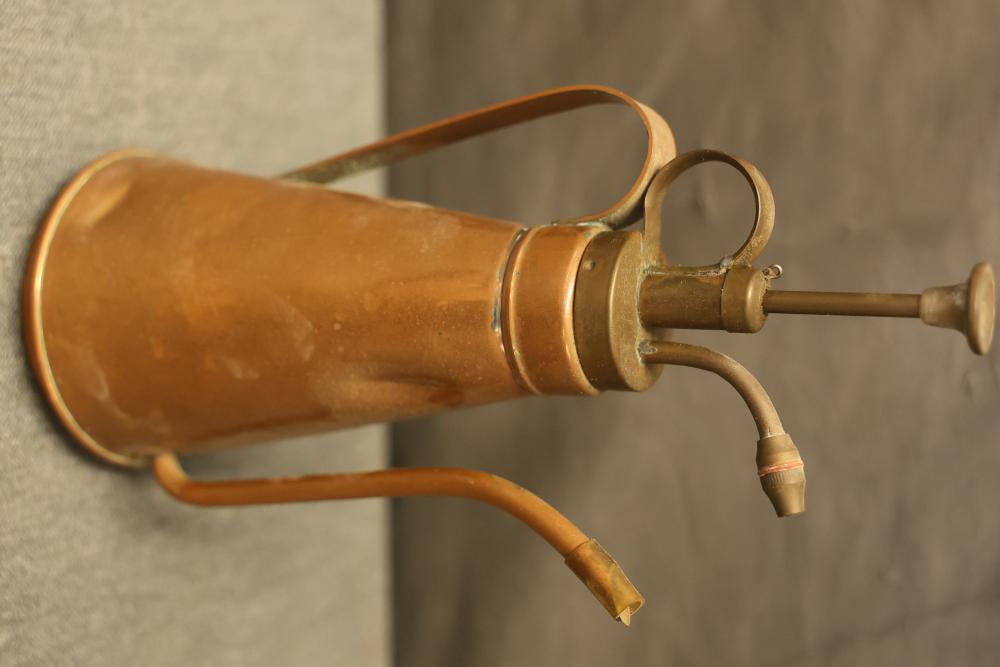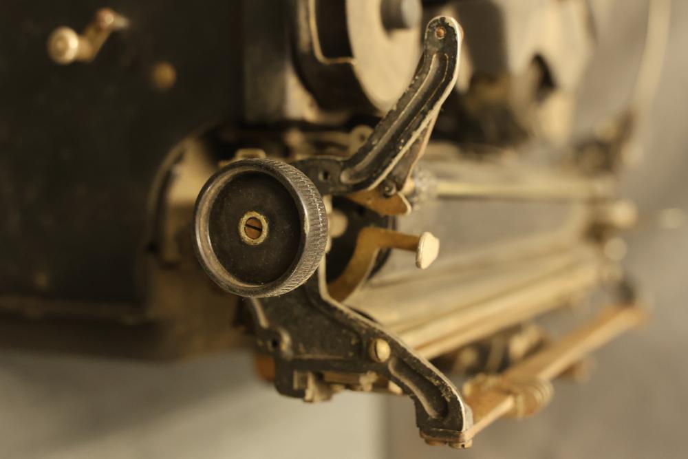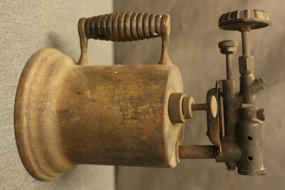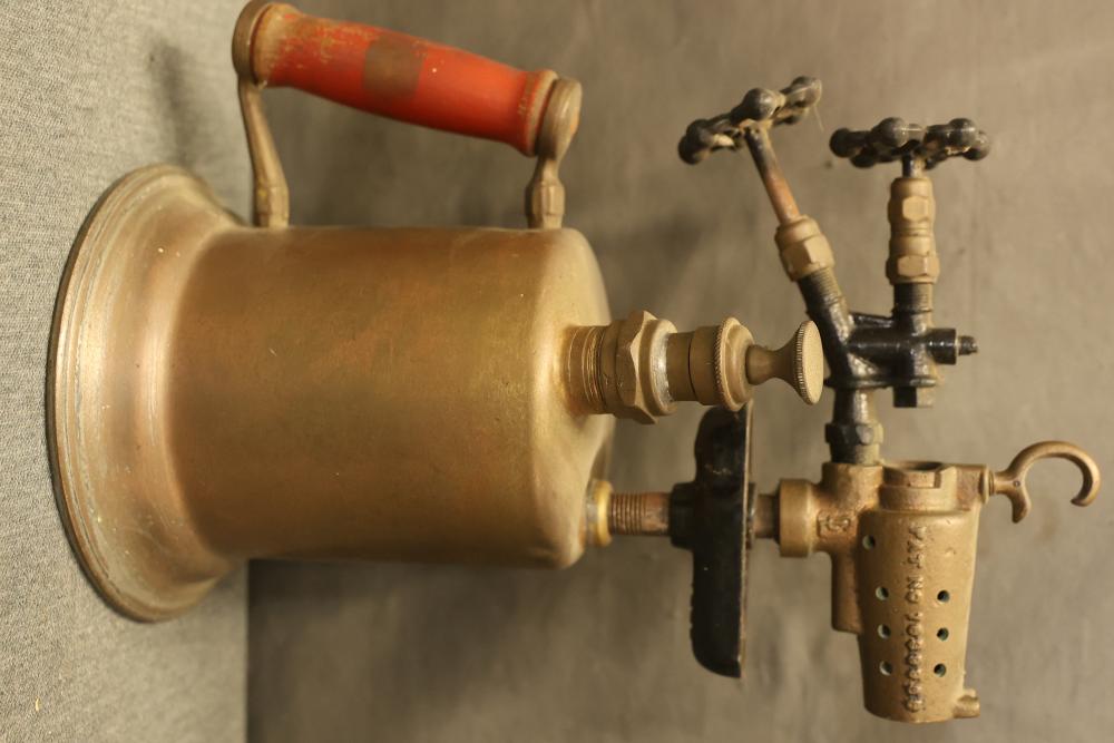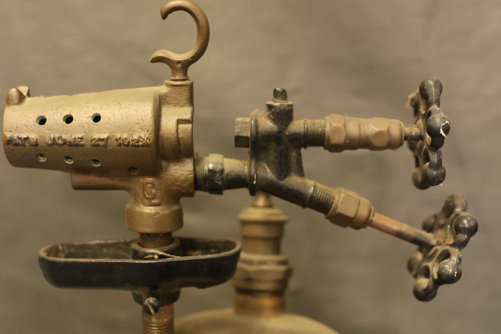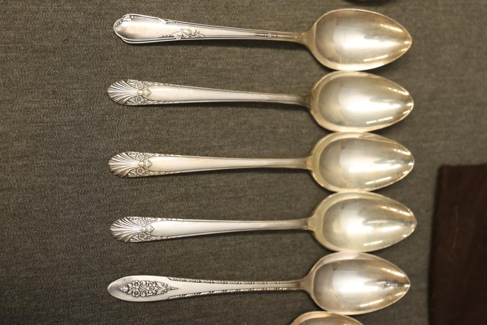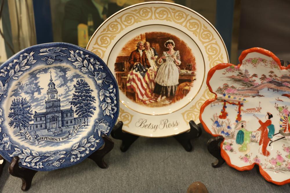 Vintage items including Remington Noiseless typewriter, Chief Croker fire extinguisher, vintage tools, Budweiser and Seagrams beer steins, and William Tell's "Overture" Piano roll. Additional items include beer-related advertising pieces, decorative plates, a heart-shaped crystal dish, and a selection of silver utensils. Pickup only.