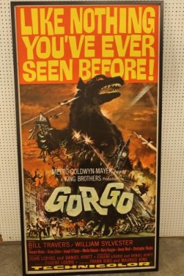 Framed Three-Sheet Vintage Gorgo Movie Poster Print. Measures 79.5 inches long, 41.5 inches wide. Includes some hardware on the back of the poster. Pickup only.