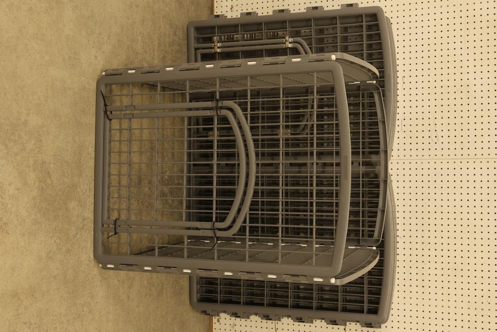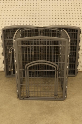 Pet crate divider panels with interlocking capability to expand the size of the crate. Includes 16 divider panels, 2 divider panels with openable doors for animal access, and 8 white pins for interlocking crate divider lengths. Panels measure approximately 34 inches long and 26.5 inches wide. Pickup only.