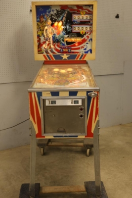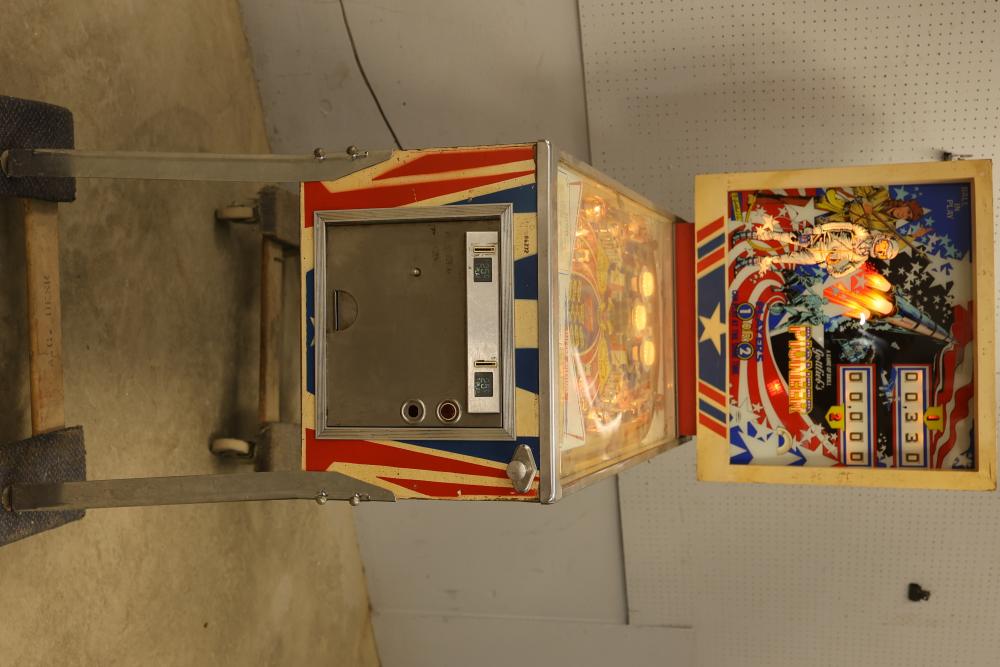 D. Gottlieb & Co. Pioneer Pinball Machine with restored wiring and bumpers reported by the seller. Includes the original instruction manual and extra fuses. One of the coin slots is non-operational. Measures approximately 69 inches high, 28.5 inches wide, and 52 inches deep. Rolling dollies are not included. Pickup only.