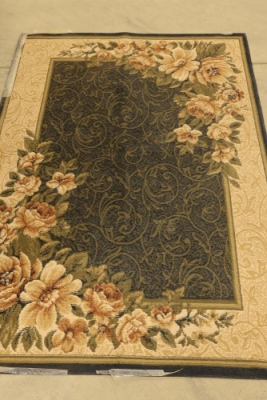 Machine-made rug featuring a floral pattern, approximately 85 inches long by 60 inches wide. The rug showcases a detailed design with intricate floral accents framed by ornamental borders. Pickup only.