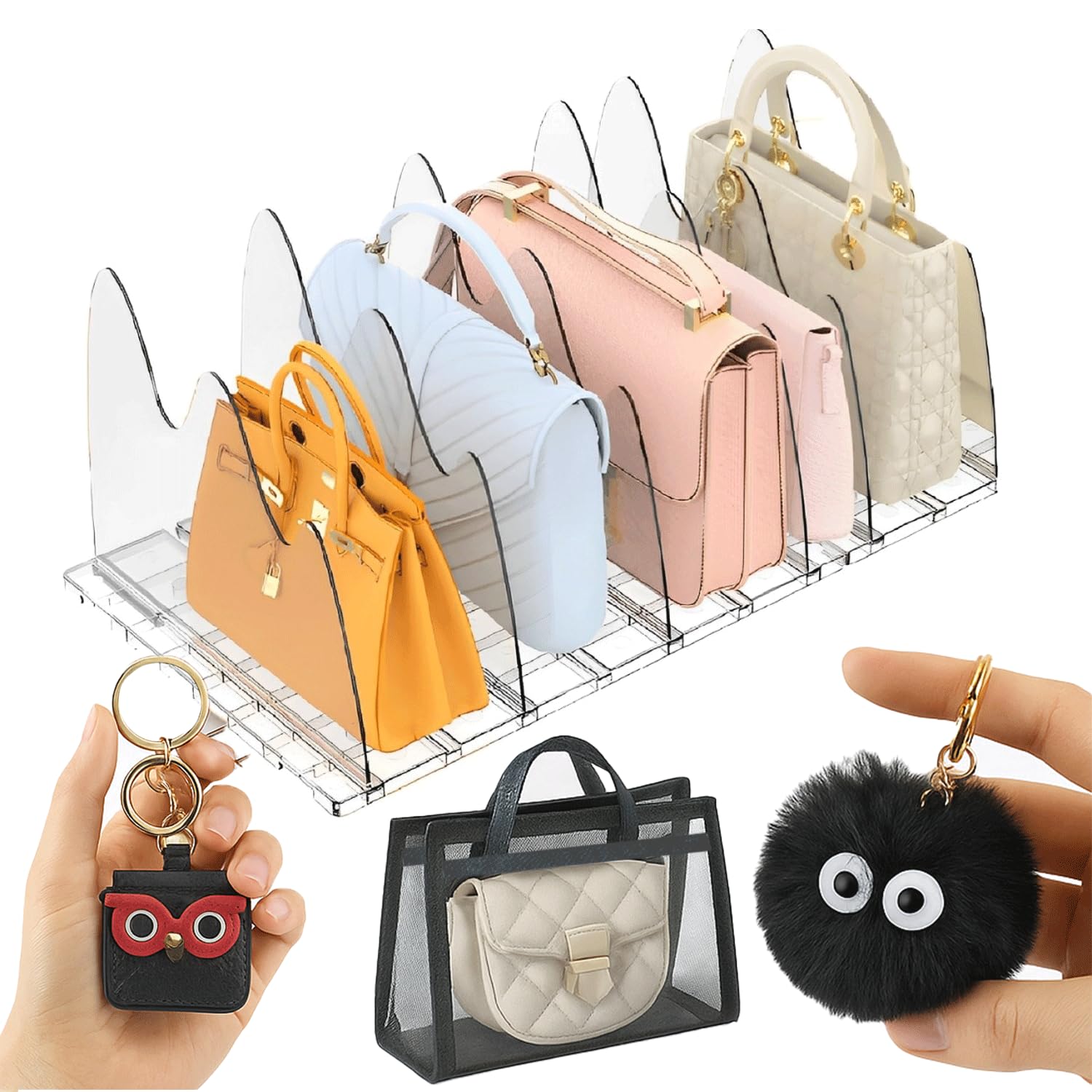 DreamDazzle Purse Organizer For Closet with Owl Shape Keychain, Black Chian & PVC bag, Adjustable acrylic shelf dividers,Purse Storage Organizer, Clutches, Clothes, Sweater, Towel