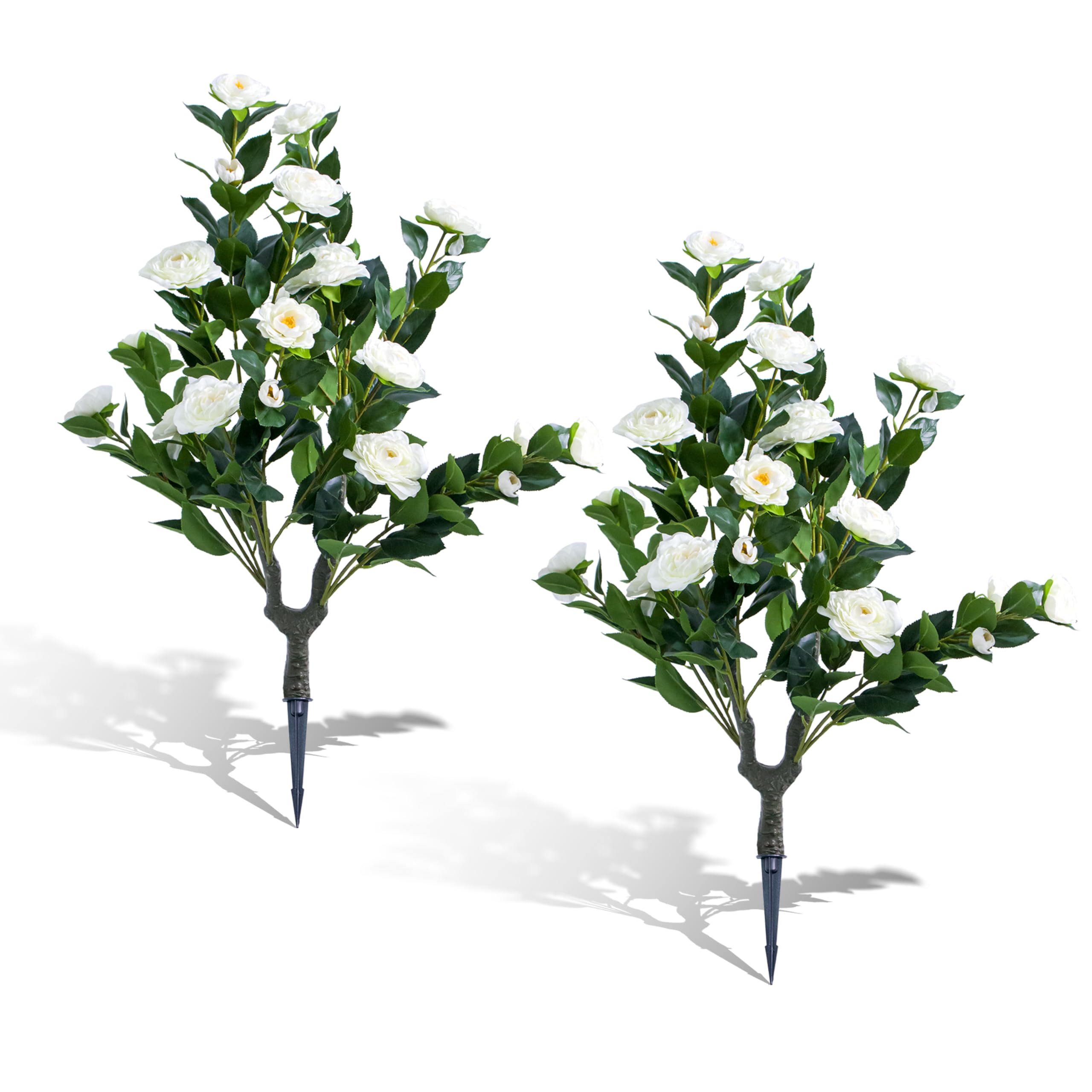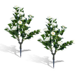 Foryoudecor Evergreen Artificial Plant, Set of 2 UV Resistant Indoor Outdoor Garden Decor, 35.4" Faux Blooming Camellia White Blossom for Indoor Outdoor Garden Decor