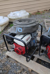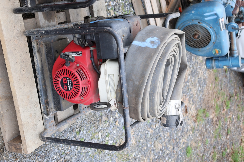 Honda WT30X trash pump, mounted in protective frame with one rolled hose attached. Seller reports: In working condition.