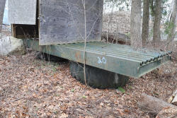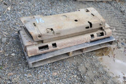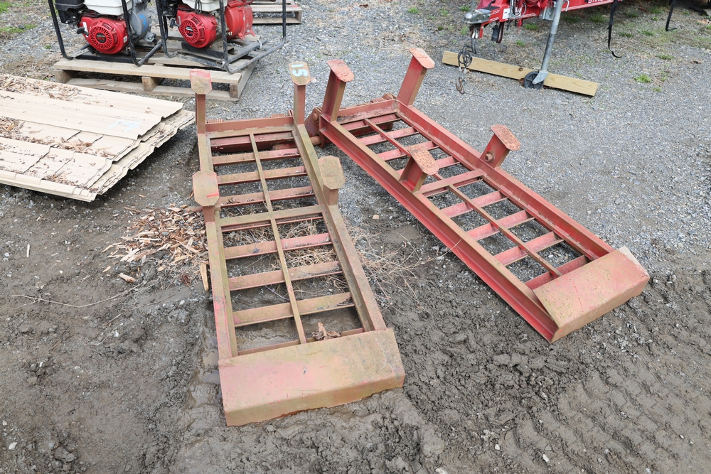 6' Pair of steel loading ramps with grated surfaces and spring-loaded ends.