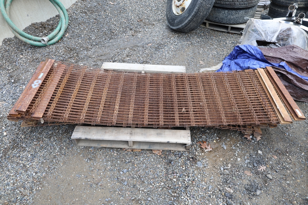 Stack of steel grating panels with welded wire grid construction; label indicates Eastern Processing Equipment with part number sm211A and size marked 83-3/4 in x 27-5/8 in; seller reports: for use with Extec screener.
