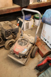 Briggs and Stratton professional series pressure washer with 190cc engine, 8.50 ft lbs gross torque rating, wheeled frame with handle. Seller reports: Ran when stored, needs TLC.