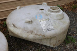 Snyder Industries plastic tank, approximately 150 gallon capacity, with screw-on lid.