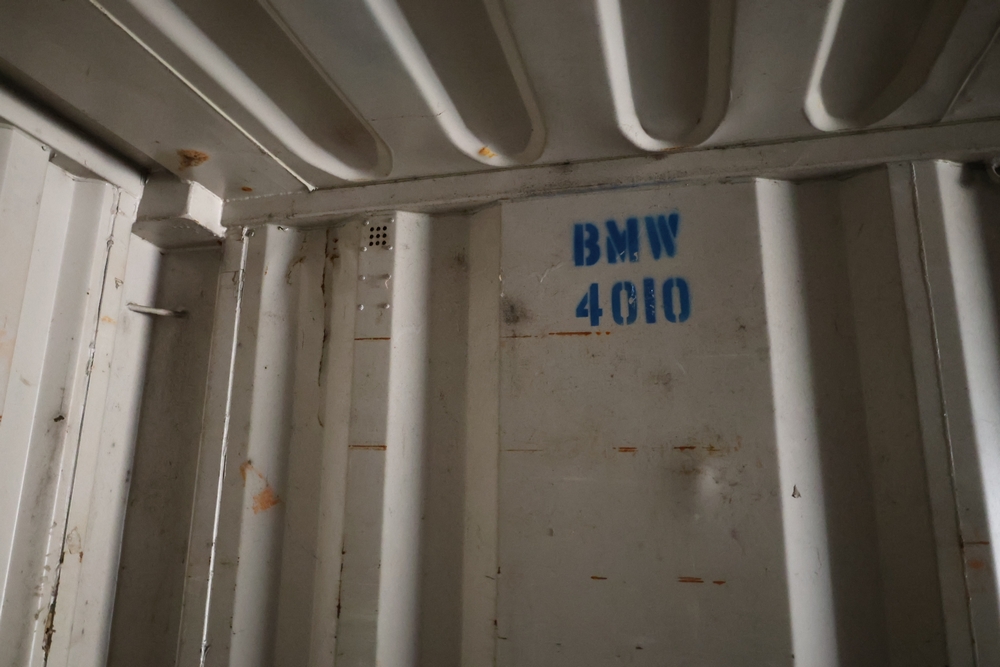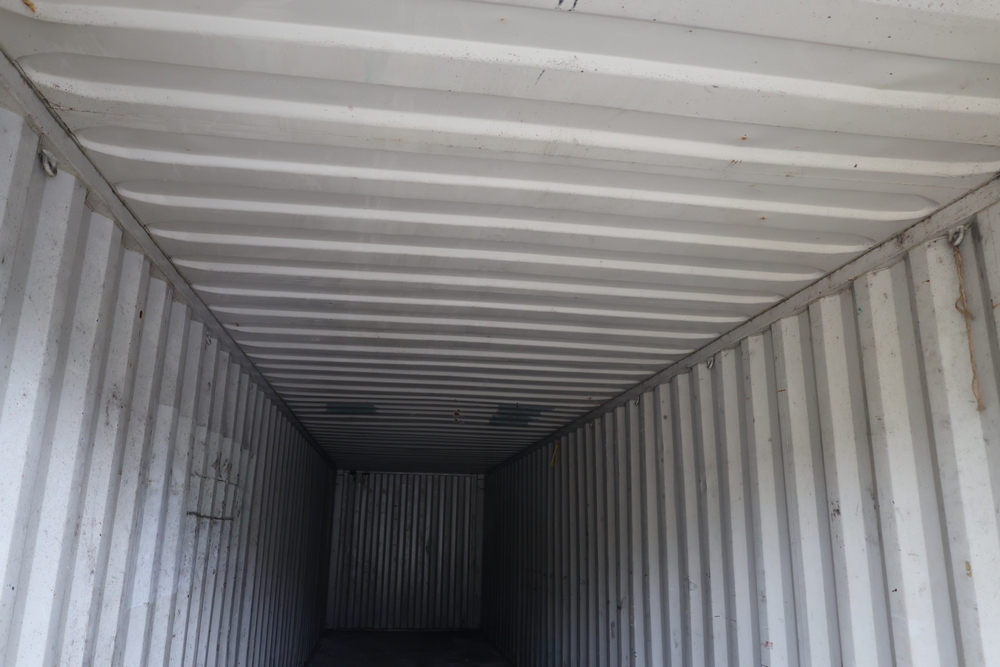 40' Shipping container, container number TPHU 435035 8, double door end, interior metal walls and wood floor.