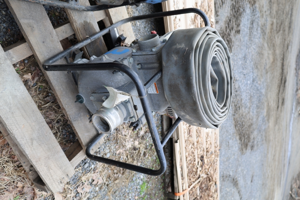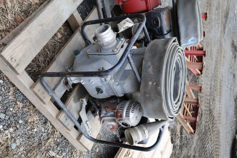 Honda WT30X trash pump, mounted in protective frame with one rolled hose attached. Seller reports: In working condition.