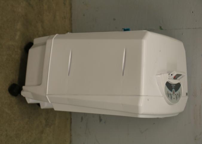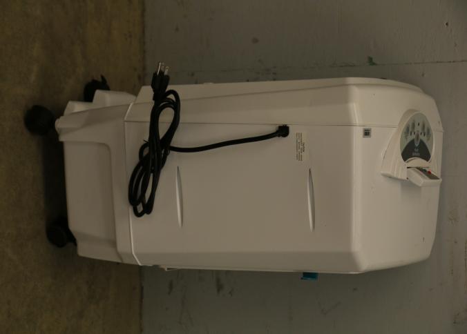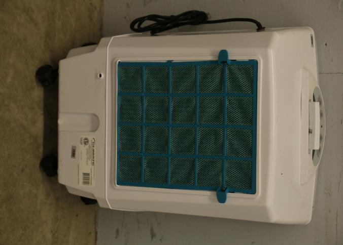 Bonaire Hi Flo 450 CFM Portable Evaporative Air Cooler with Remote, Model CDU6280064. Features an adjustable control panel, remote control, and a removable filter. Includes wheels for portability and operates on 110-120V, 60Hz, 0.55A. Pickup only.