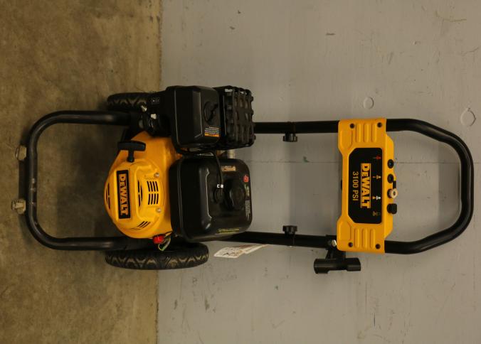 DeWalt 3100 PSI Gas Pressure Washer Model DXPW61403-S. Features a cold water gas pressure system with a rated 2.3 GPM flow. Includes durable wheels and built-in storage for accessories. Unit does not have compression and does not start. Pickup only.