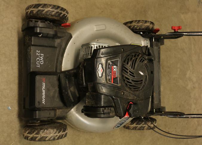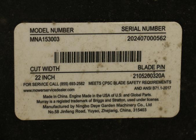 Murray 22-Inch Push Lawn Mower with Briggs & Stratton EX625 Engine. Features a 150cc engine with 6.25 ft-lbs gross torque. Equipped with forward drive, 22-inch steel cutting deck, and manual height-adjustable handle. Hardware not included. Unit has compression but does not start. Pickup only.