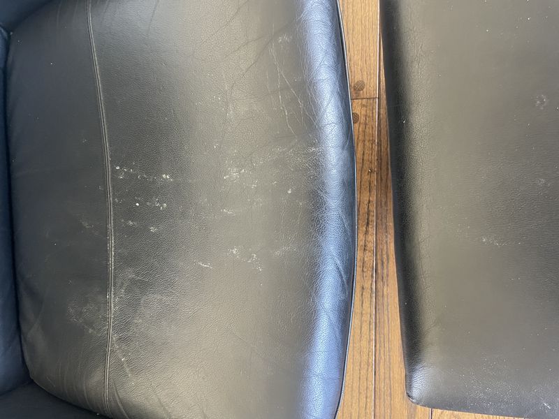 Leather Chair, Foot Rest, Electric Fireplace. Electric propane fireplace with marble surround; Ikea leather-like chair & footrest.