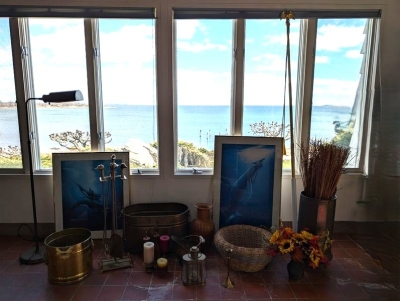 Baker Chest, Chair, Décor. Baker 4-drw chest; woven chair; sign America's Cup picture; copper sailboat; Charles Morgan print; brass beach décor; other related items as seen in photos, incl throw blankets & pillows. Located on the second floor.