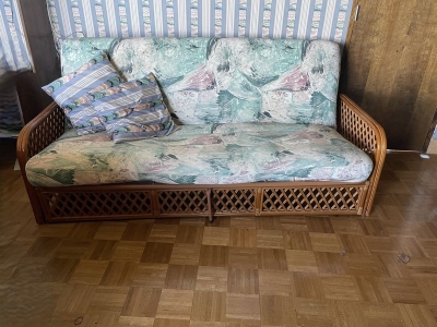Futon Bed, Baker Chair. Wicker futon bed with Baker chair. See photos for details. Loc on main fl.