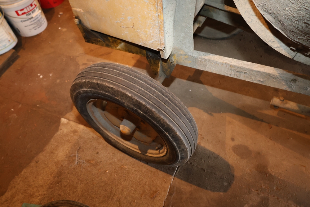 Liquidation of a general contracting company. Items include towable motor mixer; Muller power trowell steel cable rolls; live edge wood slabs/boards; Mutoh drafting machine; rolls orange plastic safety fencing; Skil 1/2" drill model 351 drill press; primed cedar siding; C. B. Nelson Co. "Cost Cutter" saw table; concrete chutes; steel scaffold wall brackets; two-wheeled material dollies; concrete curing blankets; ladder jacks; Universal portable propane convection heater; wood frame storage shed; Miller Ready Roofer fall protection kit; PVC sewer/drain fittings; dimensional lumbar boards; scaffold screw jacks; Karnak roofing/foundation coatings & much more. Items are located in Pawling, NY.