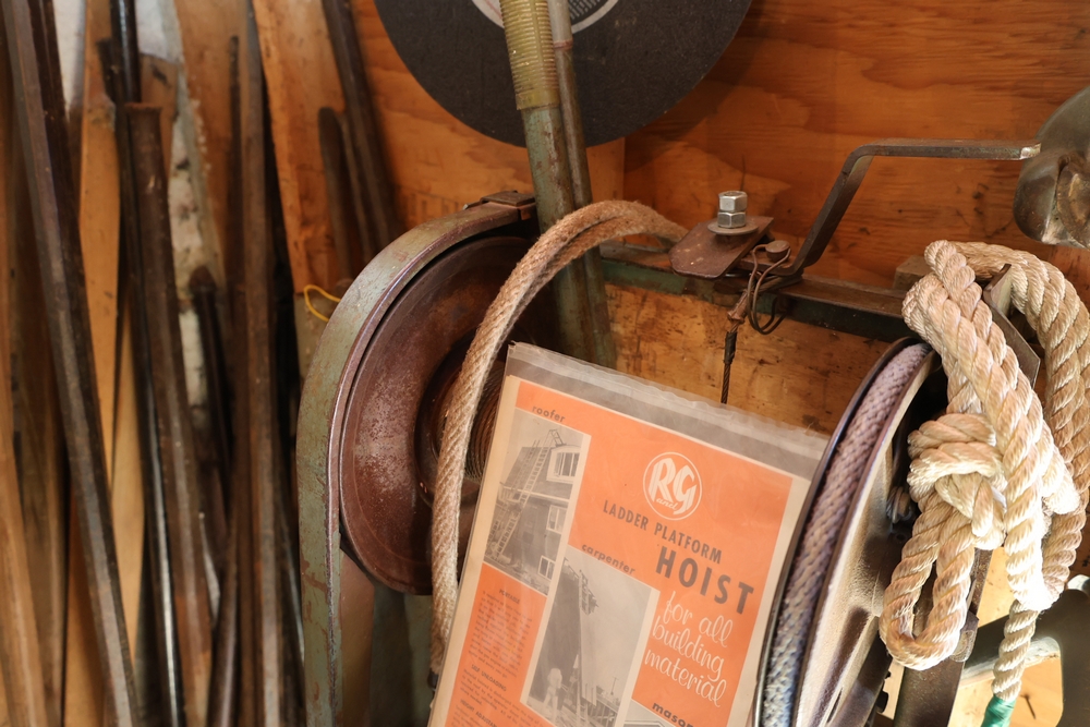 Liquidation of a general contracting company. Items include towable motor mixer; Muller power trowell steel cable rolls; live edge wood slabs/boards; Mutoh drafting machine; rolls orange plastic safety fencing; Skil 1/2" drill model 351 drill press; primed cedar siding; C. B. Nelson Co. "Cost Cutter" saw table; concrete chutes; steel scaffold wall brackets; two-wheeled material dollies; concrete curing blankets; ladder jacks; Universal portable propane convection heater; wood frame storage shed; Miller Ready Roofer fall protection kit; PVC sewer/drain fittings; dimensional lumbar boards; scaffold screw jacks; Karnak roofing/foundation coatings & much more. Items are located in Pawling, NY.