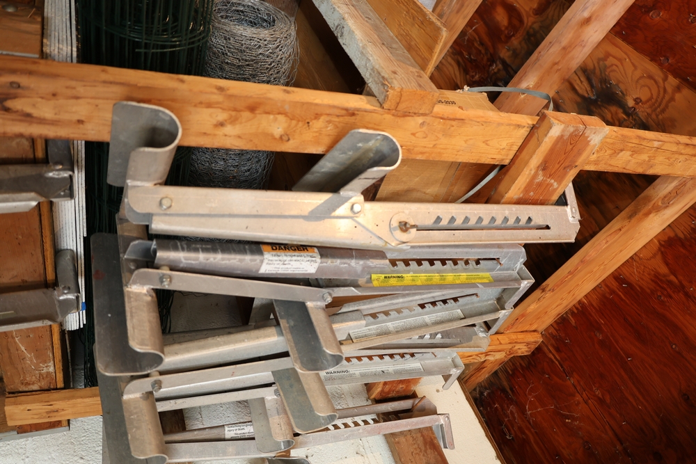 Liquidation of a general contracting company. Items include towable motor mixer; Muller power trowell steel cable rolls; live edge wood slabs/boards; Mutoh drafting machine; rolls orange plastic safety fencing; Skil 1/2" drill model 351 drill press; primed cedar siding; C. B. Nelson Co. "Cost Cutter" saw table; concrete chutes; steel scaffold wall brackets; two-wheeled material dollies; concrete curing blankets; ladder jacks; Universal portable propane convection heater; wood frame storage shed; Miller Ready Roofer fall protection kit; PVC sewer/drain fittings; dimensional lumbar boards; scaffold screw jacks; Karnak roofing/foundation coatings & much more. Items are located in Pawling, NY.