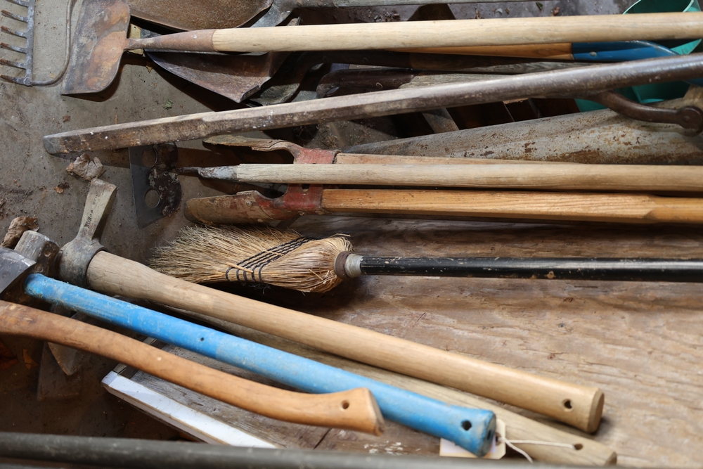 Liquidation of a general contracting company. Items include towable motor mixer; Muller power trowell steel cable rolls; live edge wood slabs/boards; Mutoh drafting machine; rolls orange plastic safety fencing; Skil 1/2" drill model 351 drill press; primed cedar siding; C. B. Nelson Co. "Cost Cutter" saw table; concrete chutes; steel scaffold wall brackets; two-wheeled material dollies; concrete curing blankets; ladder jacks; Universal portable propane convection heater; wood frame storage shed; Miller Ready Roofer fall protection kit; PVC sewer/drain fittings; dimensional lumbar boards; scaffold screw jacks; Karnak roofing/foundation coatings & much more. Items are located in Pawling, NY.