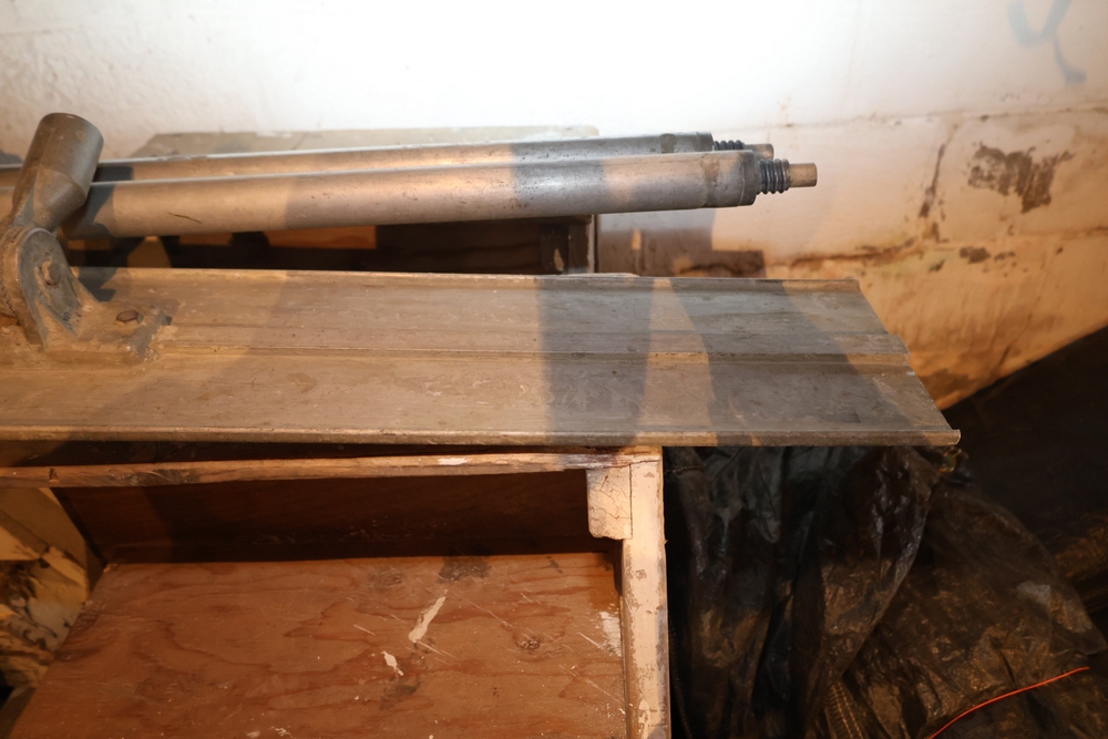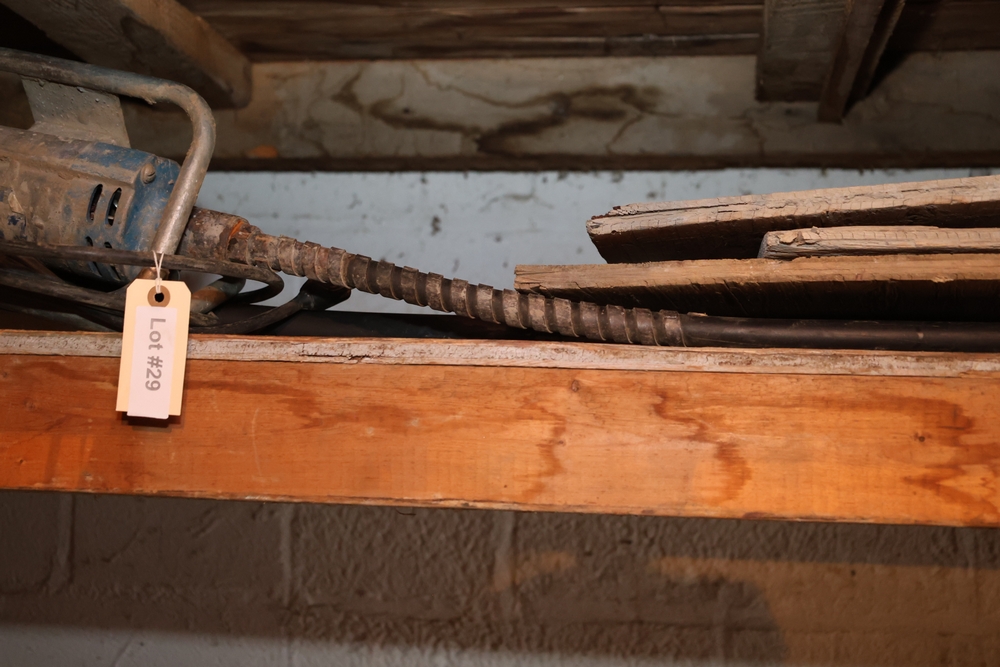 Liquidation of a general contracting company. Items include towable motor mixer; Muller power trowell steel cable rolls; live edge wood slabs/boards; Mutoh drafting machine; rolls orange plastic safety fencing; Skil 1/2" drill model 351 drill press; primed cedar siding; C. B. Nelson Co. "Cost Cutter" saw table; concrete chutes; steel scaffold wall brackets; two-wheeled material dollies; concrete curing blankets; ladder jacks; Universal portable propane convection heater; wood frame storage shed; Miller Ready Roofer fall protection kit; PVC sewer/drain fittings; dimensional lumbar boards; scaffold screw jacks; Karnak roofing/foundation coatings & much more. Items are located in Pawling, NY.