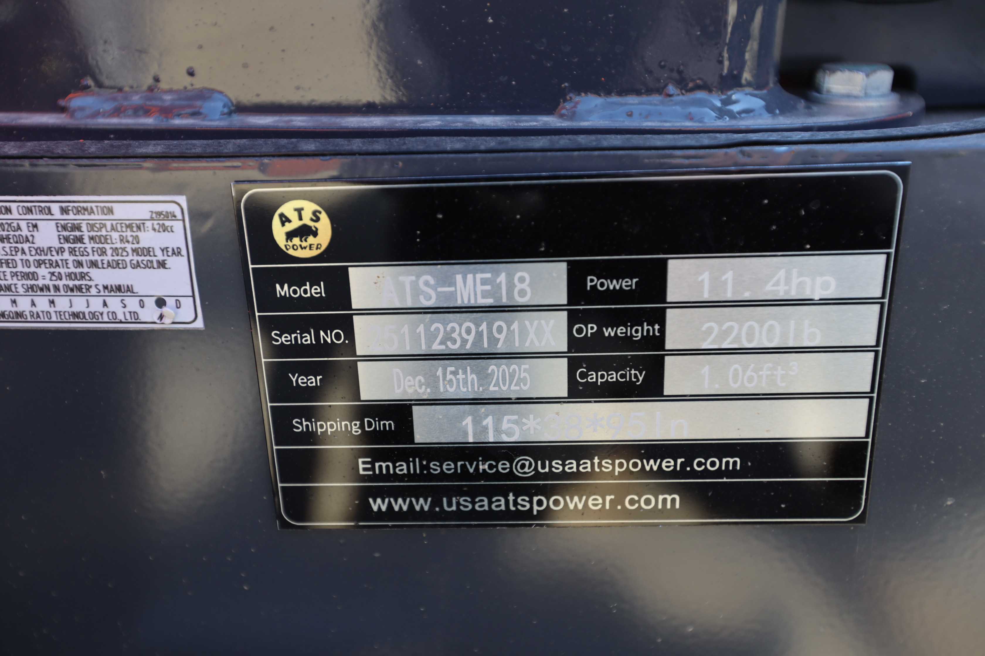 New 2026 ATS Power Mini Excavator, model: ATS-ME18 with pilot controls, dozer blade, bucket, and RATO420 gas engine. Hours reading less than 1 hour.