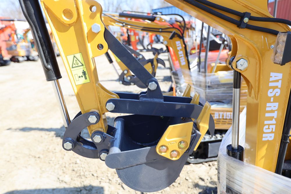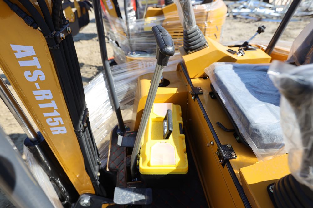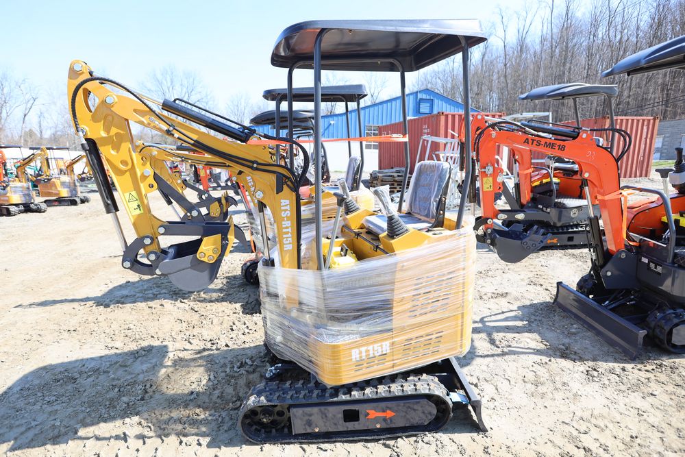 New 2026 ATS Power Mini Excavator, model: ATS-RT15R with pilot controls, dozer blade, bucket, and RATO420 gas engine. Hours reading 2 hours.