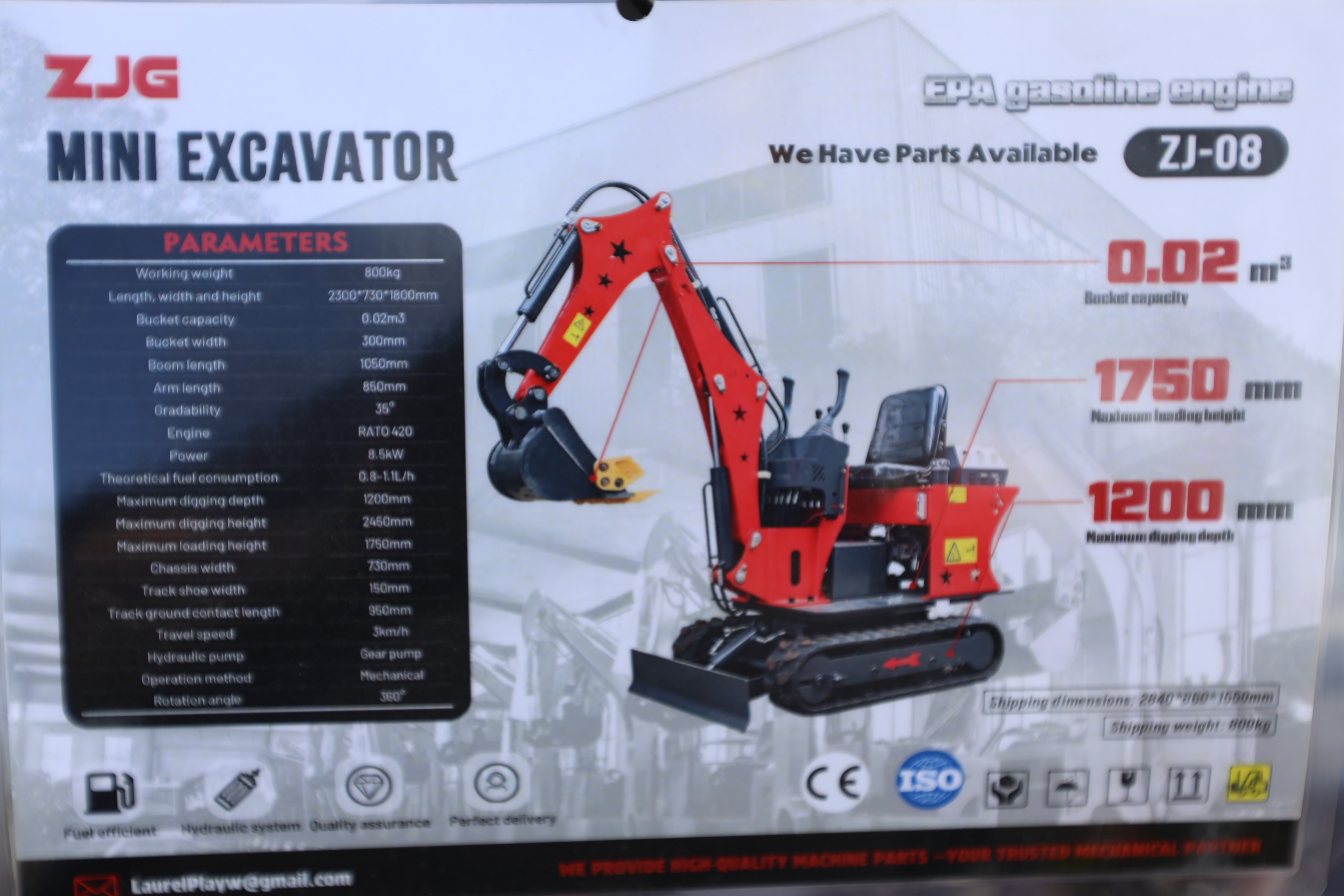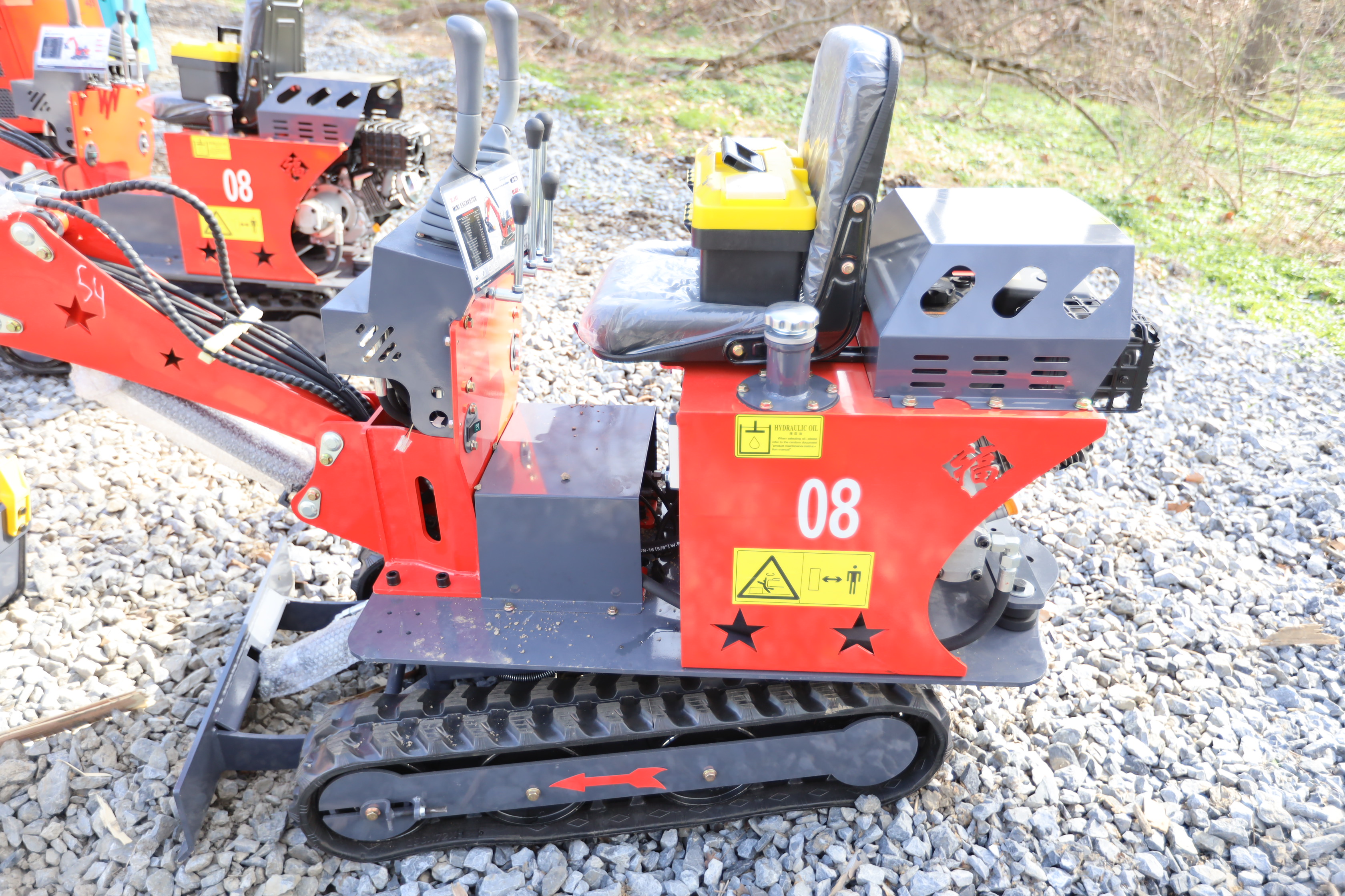 New 2026 ZJG Mini Excavator, model: ZJZ-08 with dozer blade, bucket, and gas engine. Hours reading less than 1 hour.