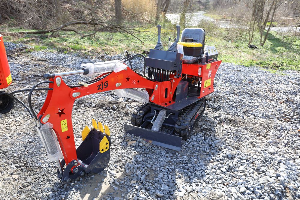 New 2026 ZJG Mini Excavator, model: ZJZ-08 with dozer blade, bucket, and gas engine. Hours reading less than 1 hour.