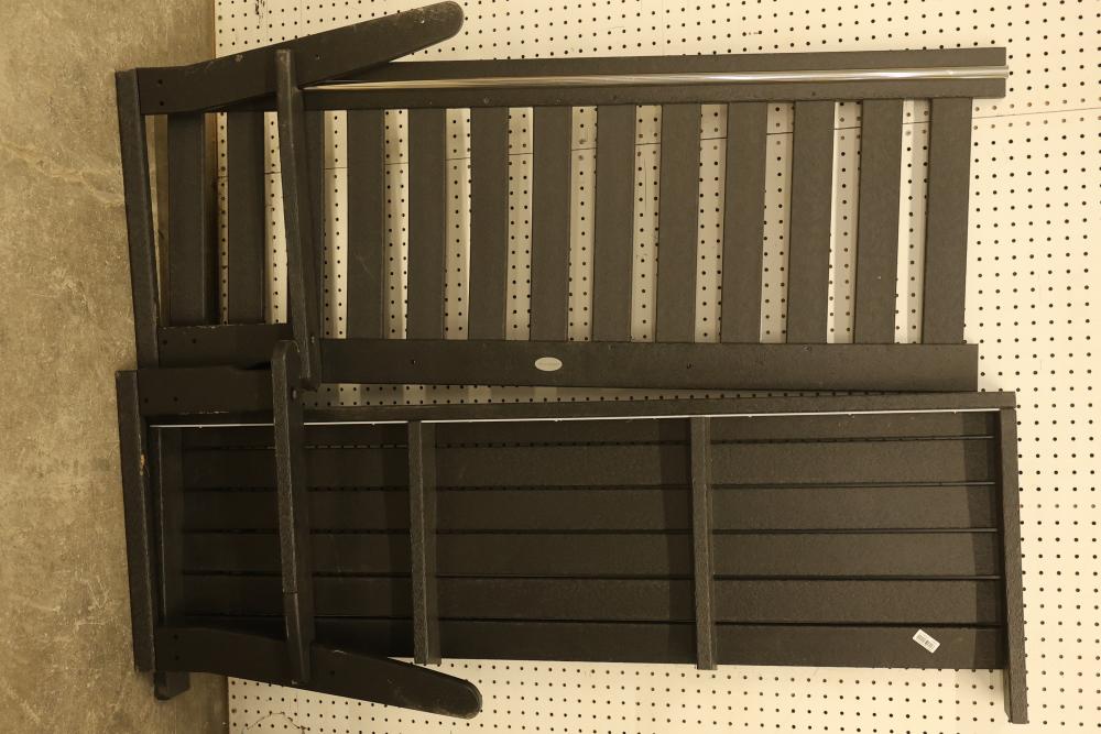 Polywood Model GNB60MA Vineyard 60 Inch Outdoor Black Patio Bench. Constructed from durable materials and designed for outdoor use, this bench features a classic black finish. Box not included. Pickup only.