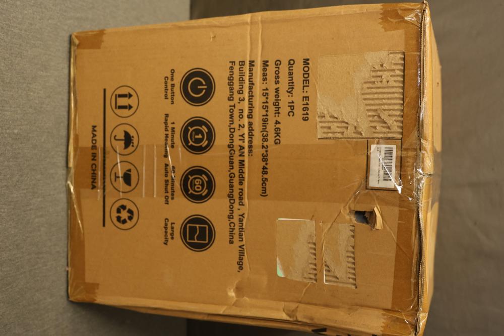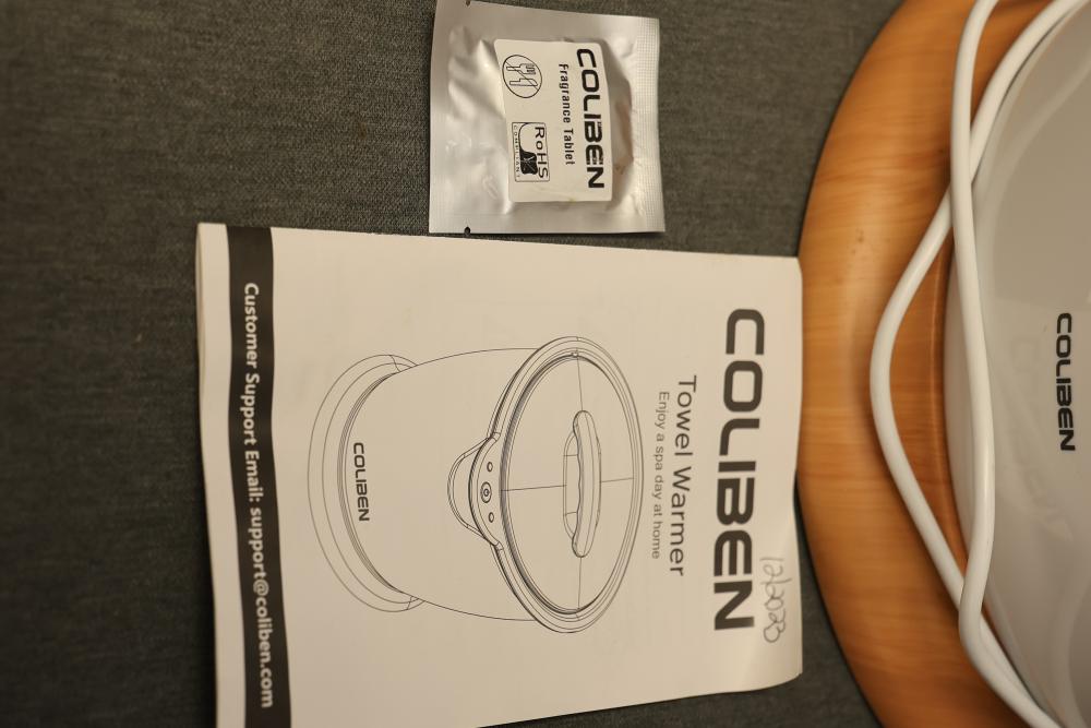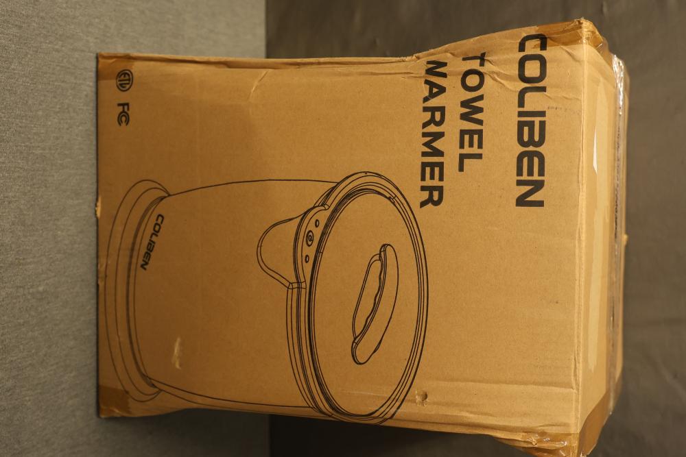 Coliben E1619 Towel Warmer with Dented Interior. The unit is functional and includes its original packaging and accessories. The interior contains visible dents but remains operational.