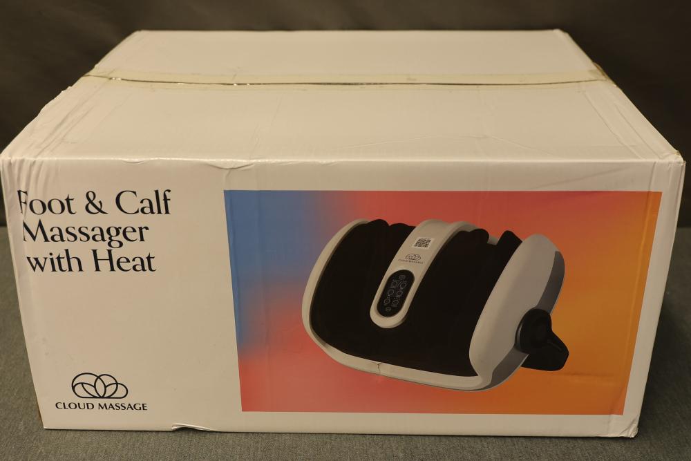 Cloud Massage Foot and Calf Massager with Heat. Includes remote and user manual. Power cord is missing.