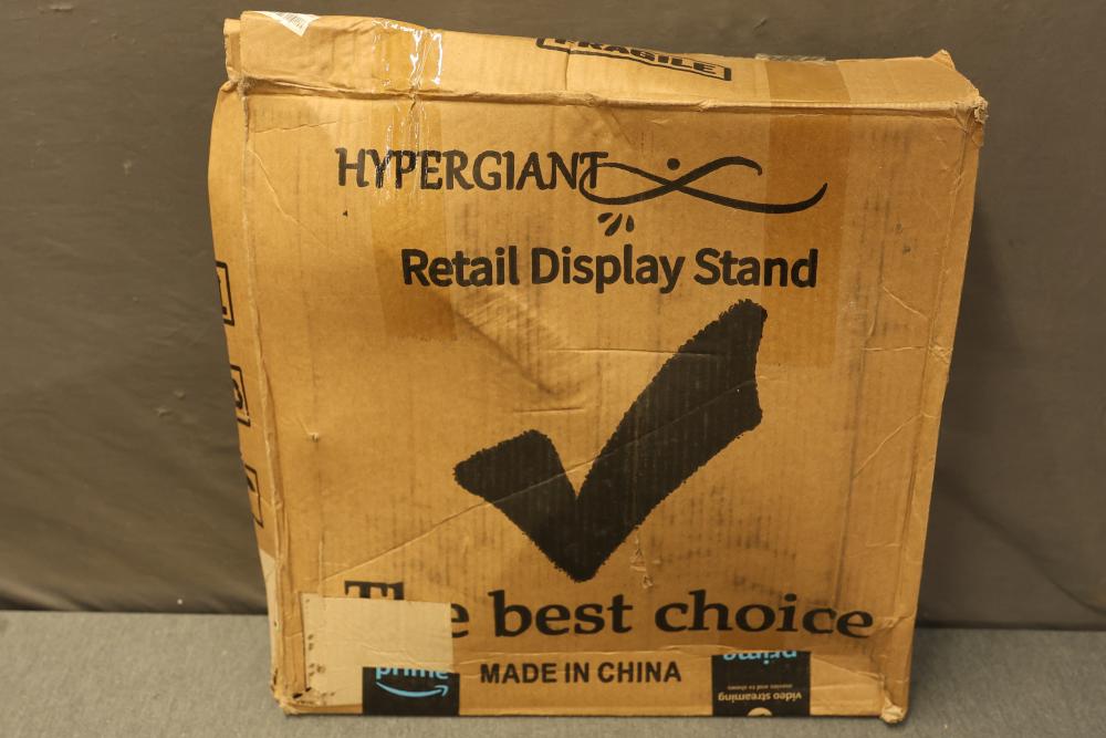Hypergiant Rotating 7-Tier Retail Display Stand With 10 Hooks Per Tier. Designed with 7 individual rotating tiers, each featuring 10 hooks, for a total of 70 hooks. Ideal for organized and efficient display purposes. Comes packaged in its original box.