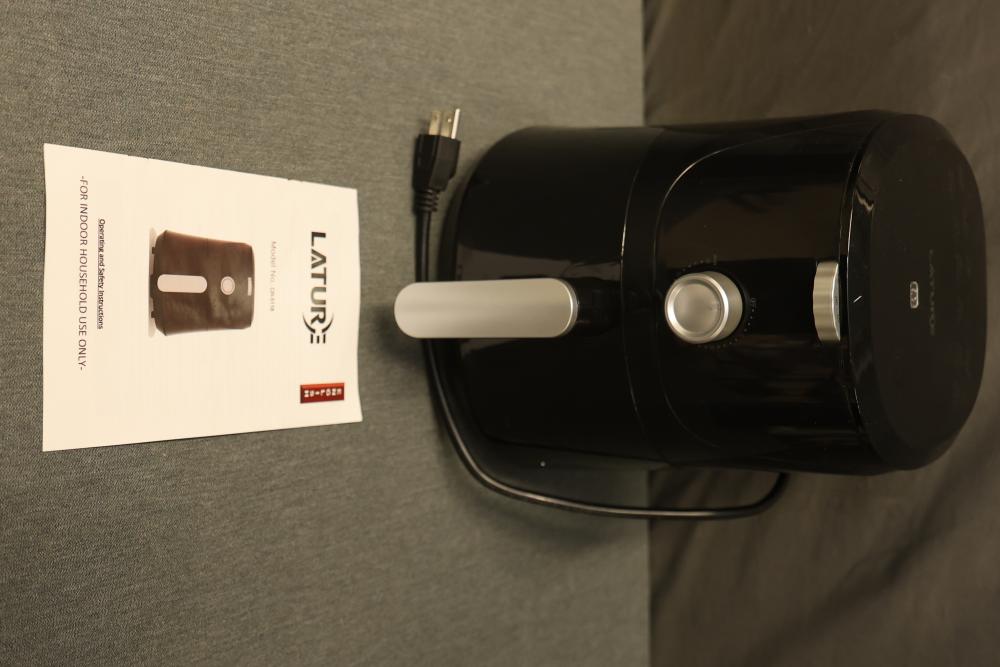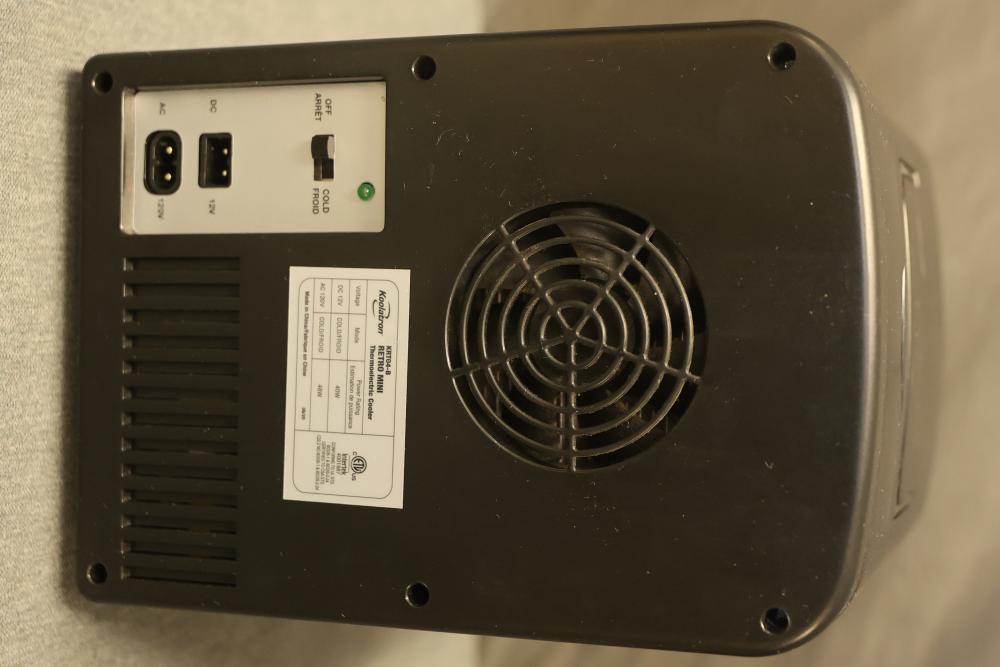 Lature CR-5118 4.2 Qt Air Fryer and Koolatron KRT04-B 4 Liter Retro Portable Mini Fridge. The air fryer includes two independent non-stick frying baskets and comes with its original manual. The mini fridge has a retro design but is missing the power cord.