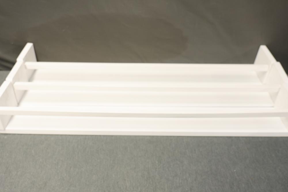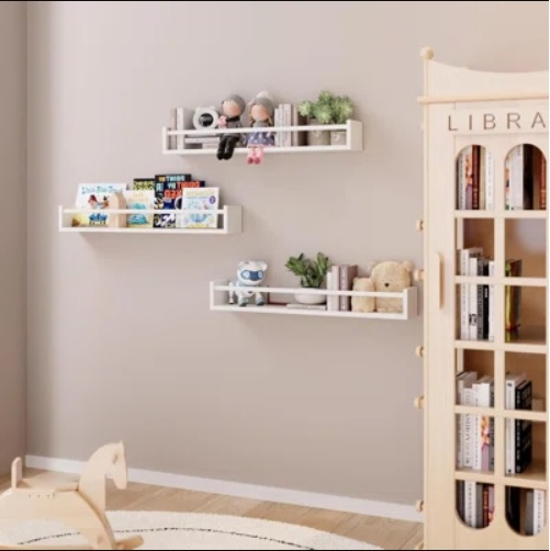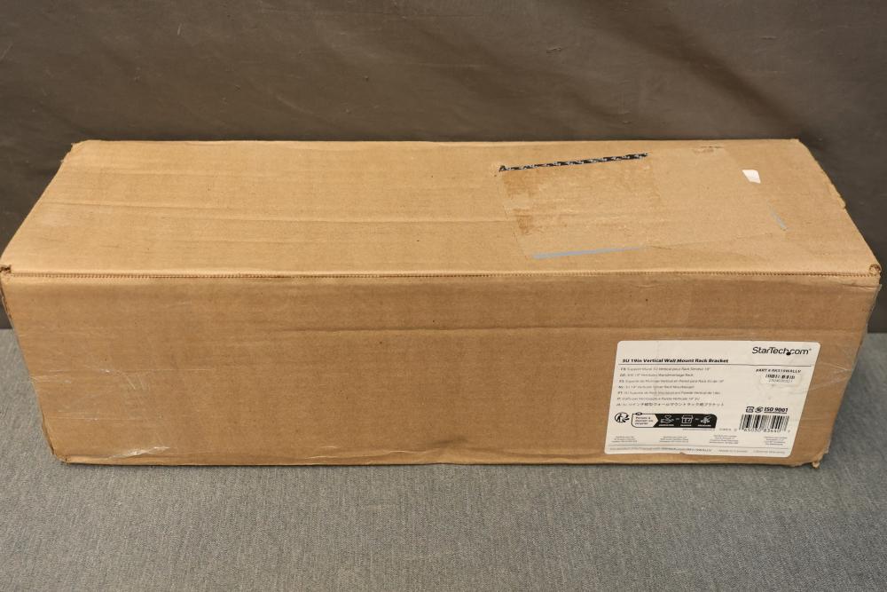 Duraline Set of 3 35.5 inch long by 4.75 inch wide Wooden White Floating Shelves and Startech RK319WALLV 3U 19 Inch Vertical Wall Mount Rack Bracket. The wall mount rack bracket is made of steel for additional support. Floating shelves are wall-mountable, and no hardware is included.