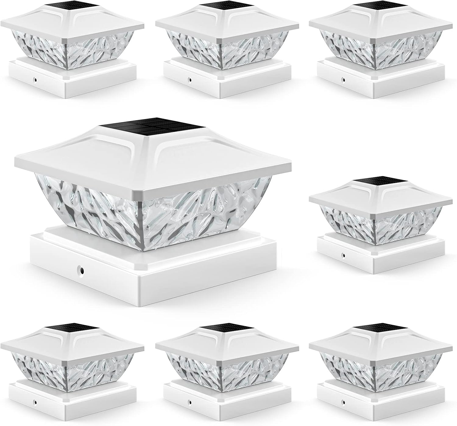 Ensli SP213 Solar Post Cap Lights with Two Lighting Modes, Quantity of 17. Features warm white and cool white lighting options. Some diffusers have cracks but lights are functional. Pickup only.