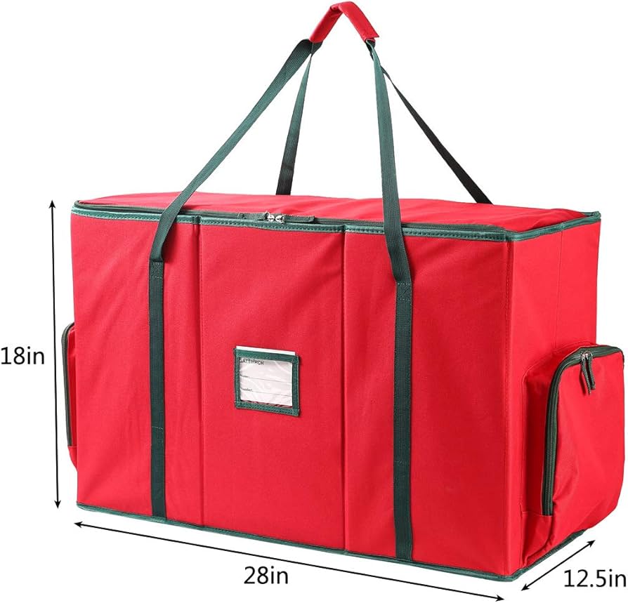 Sattiyrch Large 2-In-1 Christmas Ornament Storage Box and Figurine Container. Holds approximately 73 ornaments and features an adjustable extent area for figurines. Includes structured compartments and durable materials for safe and secure storage.