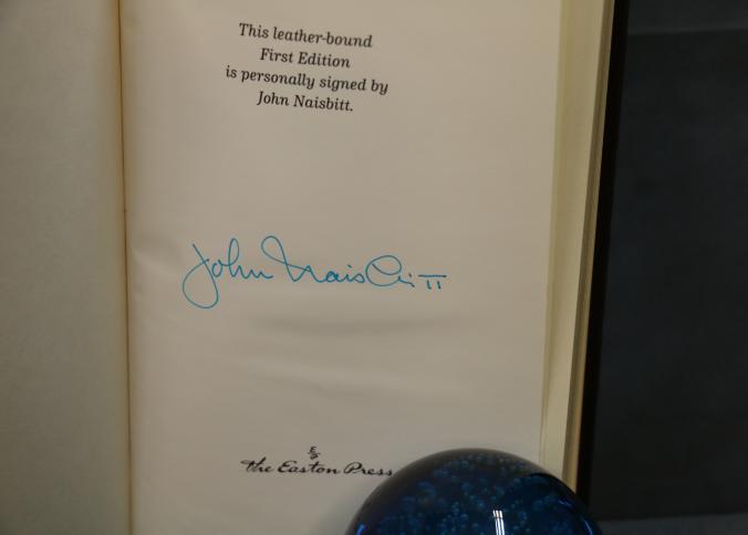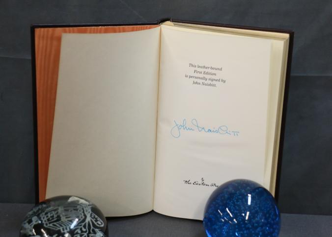Global Paradox' Leatherbound First Edition Personally Signed by John Naisbitt with ornate gold leaf designs on the cover, spine, and page edges. Copyright 1994 by The Easton Press.