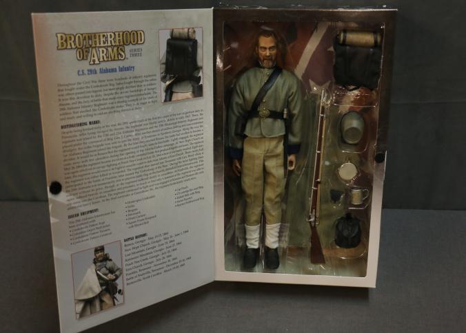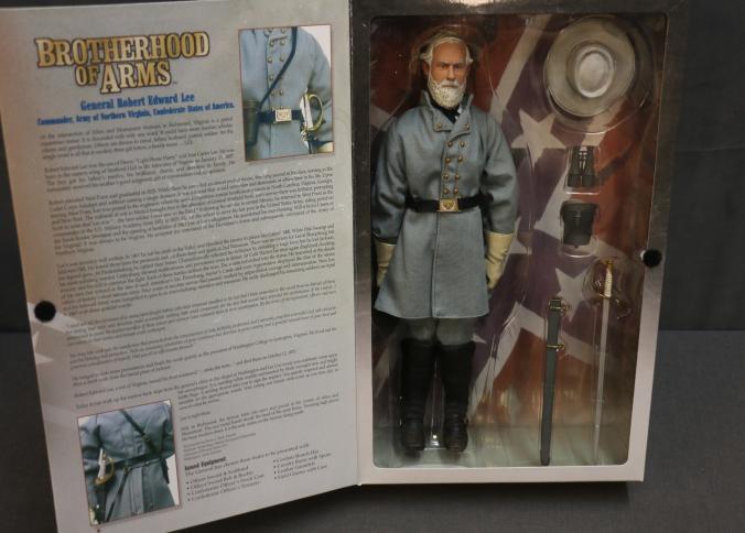 Five Brotherhood of Arms action figures depicting Confederate generals and infantryman, including Robert E. Lee, Nathan Bedford Forrest, J.E.B. Stuart, Thomas Jonathan 'Stonewall' Jackson, and a Confederate Infantryman. Figures come with detailed period-specific uniforms, weapons, and accessories.
