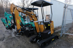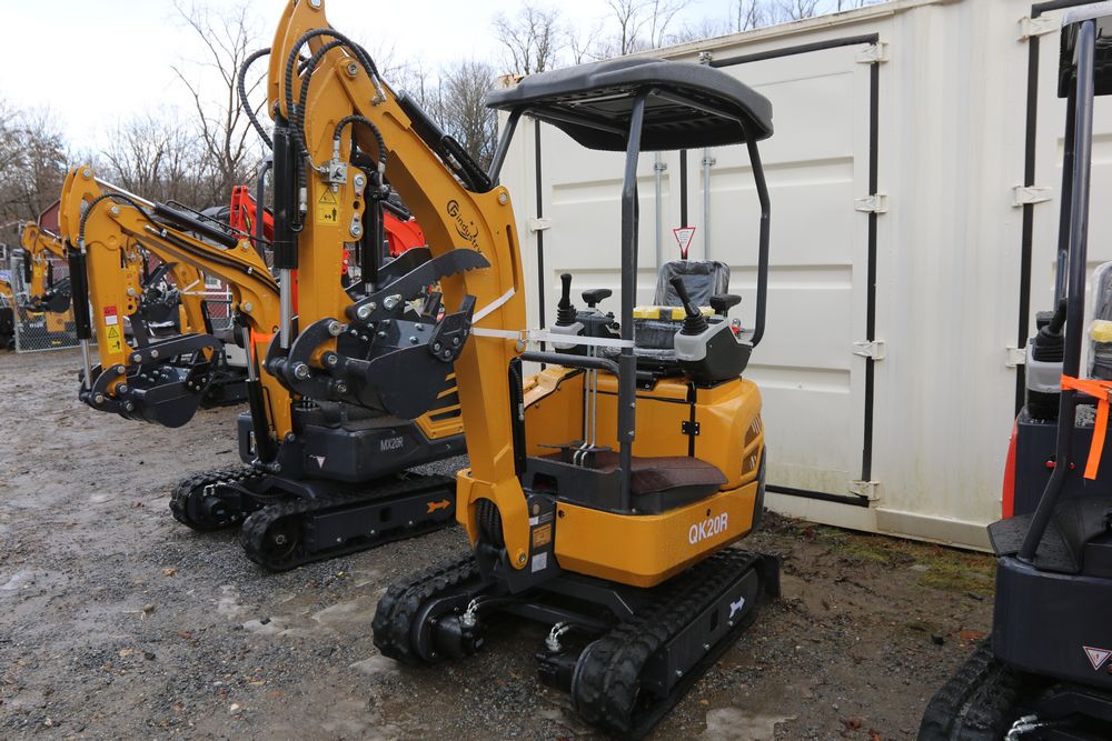 New 2025 CFG Industrial gas powered mini Excavator model H15R with 420cc gasoline engine, bucket, 4' long tracks, 38.5" wide base, 6" wide tracks, canopy, hydraulic boom & bucket controls, pilot system, thumb, dozer blade. Hours reading less than 1 hour.