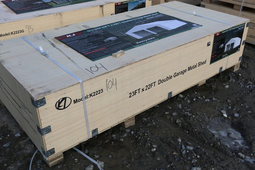 Search Item #: Keyword: Search Catalog Item #: Keyword: 20 items per page 50 items per page 100 items per page Go to page #: 189 , 190 , 191 , 192 , 193 , 194 #96 – New 2025 KJ 20 foot Bi-Parting Iron gate 7 foot tall x 20 feet long two pcs total, Model K0720. See ... More Info / Bid Now Track this Item Register for Auction Closes On: Jan 4, 2026 07:50:00 PM – 07:50:30 PM EST High Bid: $60.00 – firenems7721 Auction Type: One Lot Quantity: 1 Minimum Next Bid: $70.00 Login to Bid #96 – New 2025 KJ 20 foot Bi-Parting Iron gate 7 foot tall x 20 feet long two pcs total, Model K0720. See photos for damage. Closes: Jan 4, 2026 07:50:00 PM EST Current Bid: $60 Login to Bid More Details More Info / Bid Track Item Register New 2025 KJ 20 foot Bi-Parting Iron gate 7 foot tall x 20 feet long two pcs total, Model K0720. See photos for damage. #97 – New 2025 KJ 23'x22' Double Garage Metal shed, model K2223. More Info / Bid Now Track this Item Register for Auction Closes On: Jan 4, 2026 07:50:30 PM – 07:51:00 PM EST High Bid: $475.00 – dillman1125 Auction Type: One Lot Quantity: 1 Minimum Next Bid: $500.00 Login to Bid #97 – New 2025 KJ 23'x22' Double Garage Metal shed, model K2223. Closes: Jan 4, 2026 07:50:30 PM EST Current Bid: $475 Login to Bid More Details More Info / Bid Track Item Register New 2025 KJ 23'x22' Double Garage Metal shed, model K2223. #98 – New KJ All-steel carport, 20'Wx40'Lx14'T, model K4020, in wood crate. More Info / Bid Now Track this Item Register for Auction Closes On: Jan 4, 2026 07:51:00 PM – 07:51:30 PM EST High Bid: $475.00 – 65ptrk Auction Type: One Lot Quantity: 1 Minimum Next Bid: $500.00 Login to Bid #98 – New KJ All-steel carport, 20'Wx40'Lx14'T, model K4020, in wood crate. Closes: Jan 4, 2026 07:51:00 PM EST Current Bid: $475 Login to Bid More Details More Info / Bid Track Item Register New KJ All-steel carport, 20'Wx40'Lx14'T, model K4020, in wood crate. #99 – New 2025 KJ 20 foot Bi-Parting Iron gate 7 foot tall x 20 feet long two pcs total, Model K0720. See ... More Info / Bid Now Track this Item Register for Auction Closes On: Jan 4, 2026 07:51:30 PM – 07:52:00 PM EST High Bid: $60.00 – wickedpissa96 Auction Type: One Lot Quantity: 1 Minimum Next Bid: $70.00 Login to Bid #99 – New 2025 KJ 20 foot Bi-Parting Iron gate 7 foot tall x 20 feet long two pcs total, Model K0720. See photos for damage. Closes: Jan 4, 2026 07:51:30 PM EST Current Bid: $60 Login to Bid More Details More Info / Bid Track Item Register New 2025 KJ 20 foot Bi-Parting Iron gate 7 foot tall x 20 feet long two pcs total, Model K0720. See photos for damage. #99B – Husky HPR063TLOCKERBL black tool locker featuring a sturdy construction with a secure locking mechan... More Info / Bid Now Track this Item Register for Auction Closes On: Jan 4, 2026 07:52:00 PM – 07:52:30 PM EST High Bid: $50.00 – firenems7721 Auction Type: One Lot Quantity: 0 Minimum Next Bid: $60.00 Login to Bid #99B – Husky HPR063TLOCKERBL black tool locker featuring a sturdy construction with a secure locking mechanism. Model #HPR063TLOCKERBL. Closes: Jan 4, 2026 07:52:00 PM EST Current Bid: $50 Login to Bid More Details More Info / Bid Track Item Register Husky HPR063TLOCKERBL black tool locker featuring a sturdy construction with a secure locking mechanism. Model #HPR063TLOCKERBL. #100 – New livestock metal shed, 11'Tx12'Wx25'L, model K2512, in wood crate. More Info / Bid Now Track this Item Register for Auction Closes On: Jan 4, 2026 07:52:30 PM – 07:53:00 PM EST High Bid: $225.00 – mowerman Auction Type: One Lot Quantity: 1 Minimum Next Bid: $250.00 Login to Bid #100 – New livestock metal shed, 11'Tx12'Wx25'L, model K2512, in wood crate. Closes: Jan 4, 2026 07:52:30 PM EST Current Bid: $225 Login to Bid More Details More Info / Bid Track Item Register New livestock metal shed, 11'Tx12'Wx25'L, model K2512, in wood crate. #100B – New 2025 SKLP fork extension, 6ft. More Info / Bid Now Track this Item Register for Auction Closes On: Jan 4, 2026 07:53:00 PM – 07:53:30 PM EST High Bid: $3.00 – wickedpissa96 Auction Type: One Lot Quantity: 1 Minimum Next Bid: $4.00 Login to Bid #100B – New 2025 SKLP fork extension, 6ft. Closes: Jan 4, 2026 07:53:00 PM EST Current Bid: $3 Login to Bid More Details More Info / Bid Track Item Register New 2025 SKLP fork extension, 6ft. #101 – New KJ metal garage 46'Lx25'Wx15'H, model K2545G, in wood crate. More Info / Bid Now Track this Item Register for Auction Closes On: Jan 4, 2026 07:53:30 PM – 07:54:00 PM EST High Bid: $2,600.00 – francis666 Auction Type: One Lot Quantity: 1 Minimum Next Bid: $2,700.00 Login to Bid #101 – New KJ metal garage 46'Lx25'Wx15'H, model K2545G, in wood crate. Closes: Jan 4, 2026 07:53:30 PM EST Current Bid: $2,600 Login to Bid More Details More Info / Bid Track Item Register New KJ metal garage 46'Lx25'Wx15'H, model K2545G, in wood crate. #101B – New MIVA mini excavator hydraulic wood drill attachment for 1-2 ton excavators. More Info / Bid Now Track this Item Register for Auction Closes On: Jan 4, 2026 07:54:00 PM – 07:54:30 PM EST High Bid: $400.00 – cybernet Auction Type: One Lot Quantity: 1 Minimum Next Bid: $425.00 Login to Bid #101B – New MIVA mini excavator hydraulic wood drill attachment for 1-2 ton excavators. Closes: Jan 4, 2026 07:54:00 PM EST Current Bid: $400 Login to Bid More Details More Info / Bid Track Item Register New MIVA mini excavator hydraulic wood drill attachment for 1-2 ton excavators. #102 – New single garage metal shed, 12'Wx20'Lx9'T, model K1220, in wood crate. More Info / Bid Now Track this Item Register for Auction Closes On: Jan 4, 2026 07:54:30 PM – 07:55:00 PM EST High Bid: $400.00 – scout332 Auction Type: One Lot Quantity: 1 Minimum Next Bid: $425.00 Login to Bid #102 – New single garage metal shed, 12'Wx20'Lx9'T, model K1220, in wood crate. Closes: Jan 4, 2026 07:54:30 PM EST Current Bid: $400 Login to Bid More Details More Info / Bid Track Item Register New 