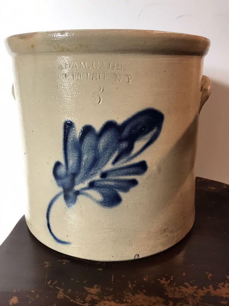 C-1850 Adam Caire Poughkeepsie, NY #3 Blue Decorated Crock, Double-Handled, From the Private Collection of Judge James Brands. Pickup Only, Rhinebeck, NY