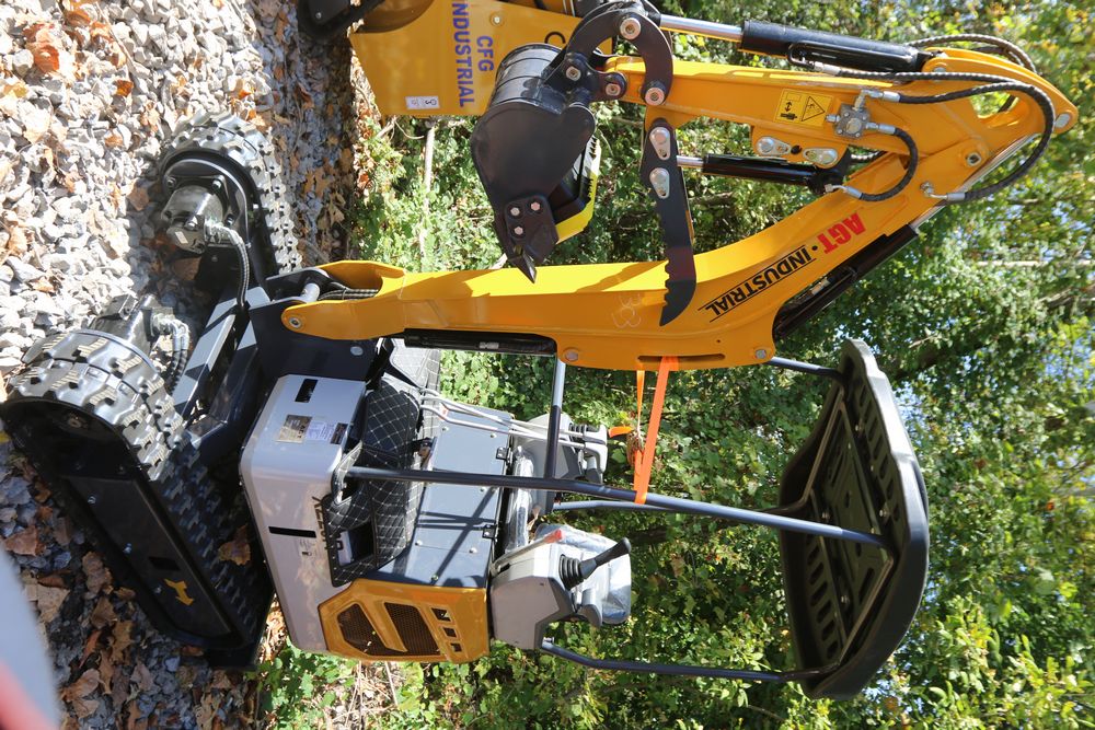 CFG Industrial XZ20R Mini Excavator, 23HP Gas Engine, 2 Cylinders, Light, Pilot Controls, Tracks, Rear Door For Easy Access To Engine, Dozer Blade, Hydraulic Thumb, Auxiliary Hydraulics. Hours reading less than 1 hour. Leaks hydraulic fluid.