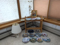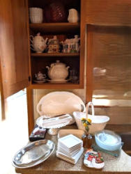 Quality Entertaining, featuring Villeroy & Boch. Over 40 pcs: Villeroy & Boch rectangle baker, 9.75"Lx7"W; 4-pc vintage taurine with cover, ladle, plate, 9"diam x8.5"H; lg cranberry glass bowl, 8.5"diam x6"H; other related items as seen in photos, incl serv trays; covered tea pots; bowls; plates; milk glass pedestal cake plate; handled basket; double handle oval platter; cake serv set; more!